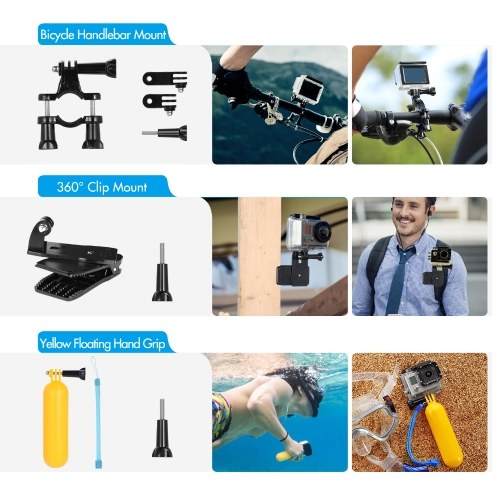 【360°Rotating Wrist Strap + 360°Rotating Clip Mount】Wrist strap for fixing your action camera to your wrist easily, and clip mount to clip your action camera stably to backpack strap, and 360° rotation design allows you to adjust capture angle flexibly.