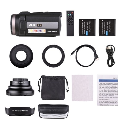 4K/60FPS Ultra HD Video:The digital video camera adopts CMOS sensor, 4K ultra-HD video resolution and 48M super clear image resolution, 3.0-inch 270° rotatable display screen and 16X zooming are accessible.