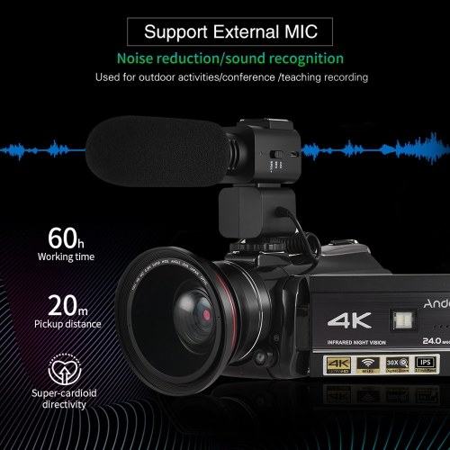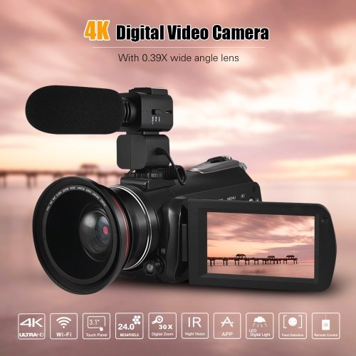 Thank you for purchasing this portable digital video camera. It can be used to shoot video as well as taking photo separately. Featuring max. 4K 24fps video resolution, 24MP image resolution, 30X digital zoom, 3.1 Inch LCD touchscreen, IR night vision function, WiFi connection, hot shoe mount for external microphone/ LED video light, it is not only suitable for using in family party, friend gathering, school activity, but also can be used as a PC camera for live streaming.