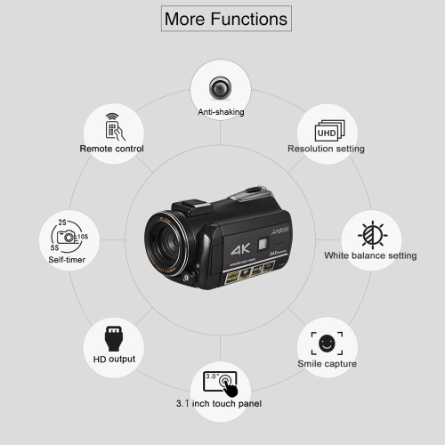 More functions: supports max. 128GB external SD card(highly recommend class 10 or above); HD multimedia interface output; 3.1 Inch LCD touchscreen; supports self-timer, white balance setting, smile capture; with rechargeable Li-ion battery and battery charger.