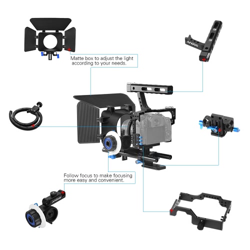 Andoer always make great products and they have done it again. This camera cage is well built and very sturdy. I was able to add my monitor, my on camera light to the cage by adding small rig shoe mounts and hot shot mount adapters. The pre- drilled machine holes makes it easy to add attachments.