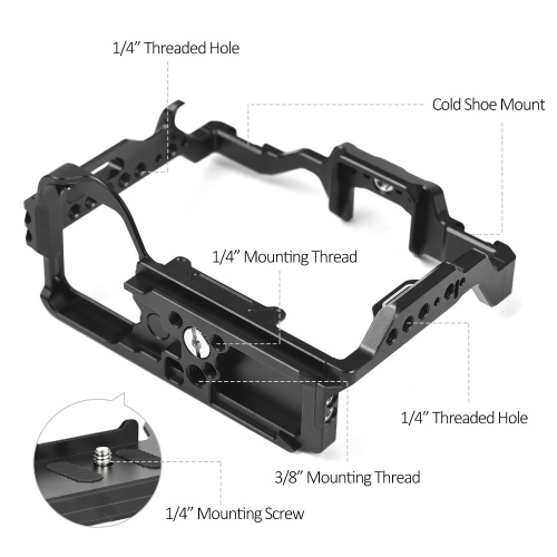 【Robust Build】Crafted from aluminum alloy material and subjected to CNC processing with a sleek black anodized finish, this camera cage is not only durable and resistant to rust but also provides reliable protection for your camera at all times.
