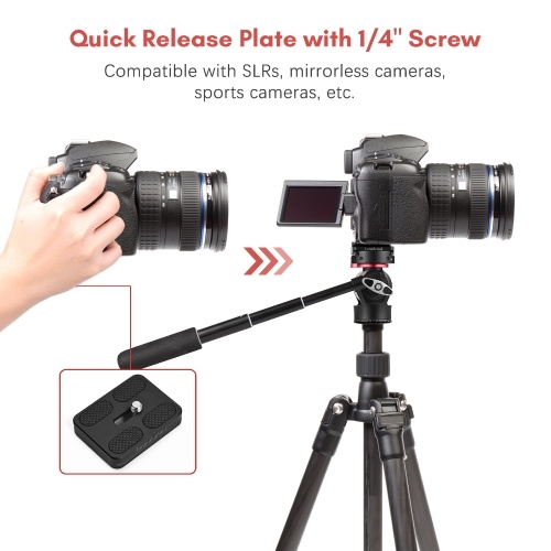 【Quick Release Plate】The quick release plate is equipped with a 1/4 inches screw and an anti-slip rubber pad, making it compatible with a variety of cameras such as SLRs, mirrorless cameras, and sports cameras.