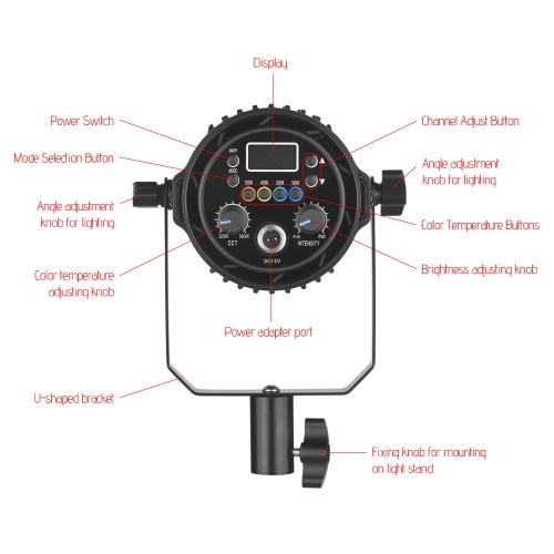 The light metal and plastic construction backed with a U-shaped yoke make it easy to mount in difficult places and the included remote controller makes the control of brightness & color temperature from a distance simple. 10 channels support multiple lights simultaneous operation.