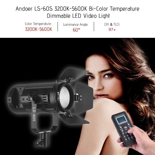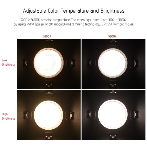 The 3200K-5600K bi-color temperature LED video light is a compact, high-output LED spot light.