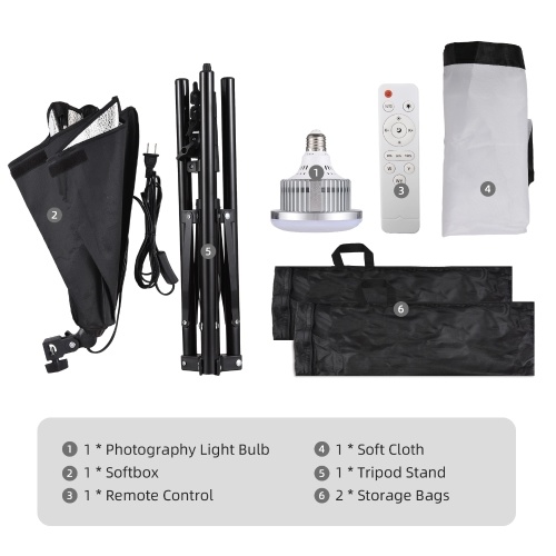 【Complete Studio Photography Kit】Included in the photography kit are 1 pack of 85W bi-color LED light, 1 pack of 40x40cm softbox, 1 pack of 1.7m light stand, 1 pack of remote control, and accompanying carry bag for convenient storage and transportation.