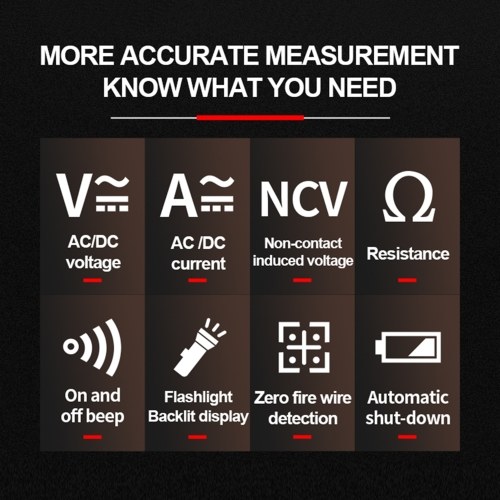 Other Features: NCV non-contact induced voltage, flashlight, automatic shut-down, etc.