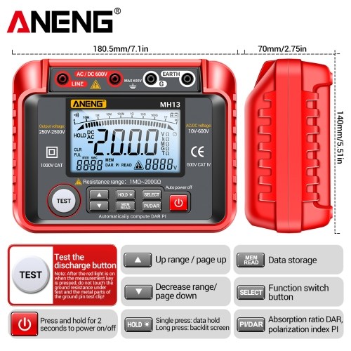 Data Hold & Data Storage: with data hold function for conveniently data checking, and it can store up to 100 set of the measured insulation resistance value, the data browse and delete also can be operated easily.