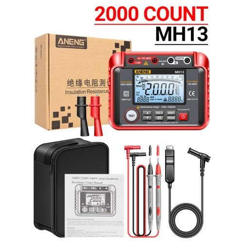 Insulation Resistance Tester: this instrument applies automatic voltage release function, with high stability and reliability, features maximum 2000 counts, 100 groups of data storage, and 1MΩ-200GΩ insulation resistance measuring range.