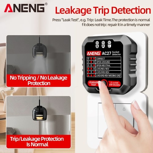 Socket tester can help you check house wiring and connection polarity of socket, it can also use to test leakage tripping. It is a professional socket tester which rapidly detect whether the socket's wire connection is correct or not.