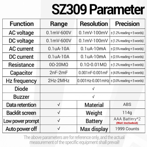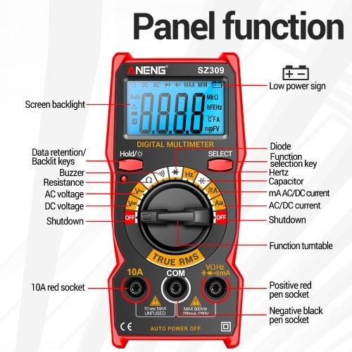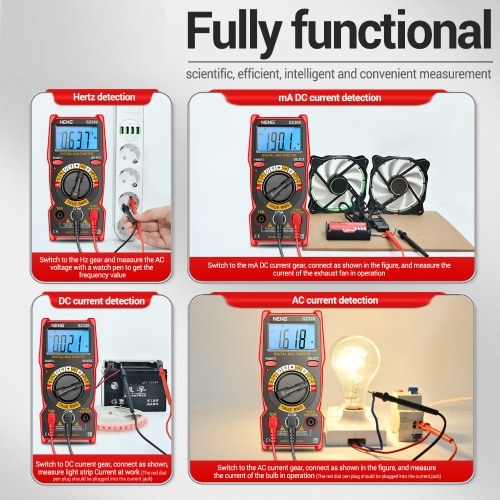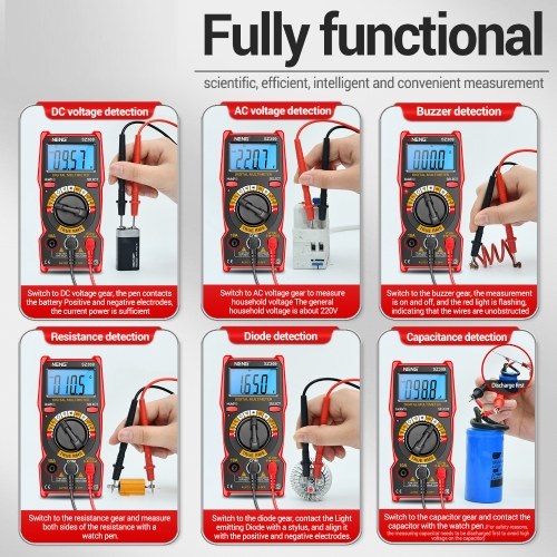 Multi-Function: Providing readings for various electrical testing including AC and DC voltage, AC/DC current, resistance, capacitor, diode, buzzer, frequency, and so that be able to meet most electrical meter needs.