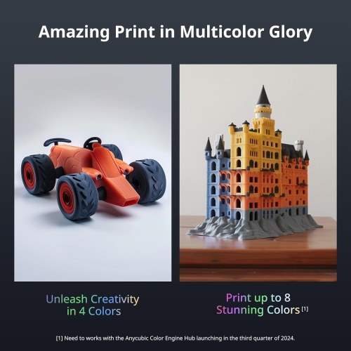 【Multi-Color Printing】Anycubic Kobra 3 3D Printer with ANYCUBIC ACE PRO enables printing in up to 4 colors, and it will soon be possible to print up to 8 colors with the Anycubic Color Engine Hub launching in the third quarter of 2024, giving you the freedom to create personalized designs.