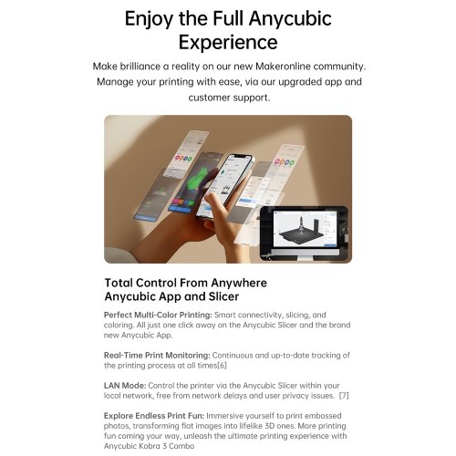 【Color Your Imagination】Anycubic Kobra 3 Combo allows you to unlock a multicolor printing experience with Pantone, the world's first 3D printing industry exclusive color filament, jointly developed with Pantone. Create stunning designs with endless possibilities that you can only imagine.