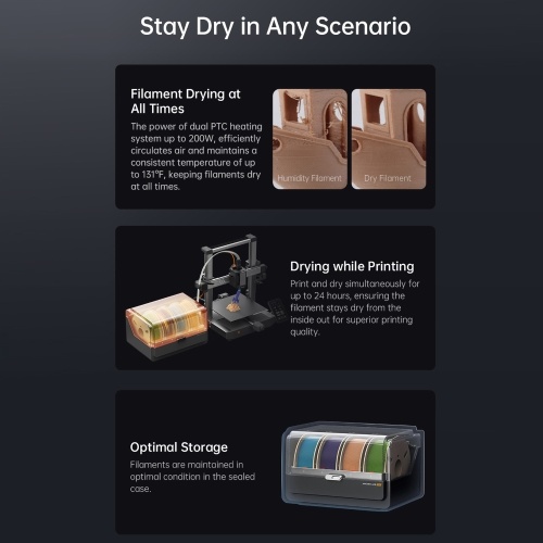 【Intelligent Design】ANYCUBIC ACE PRO features a sealed storage design integrates key features that include Nozzle Clog Detection, Automatic Filament Refill, Drying and RFID Sync function, ensuring an efficient, convenient, and successful printing experience.