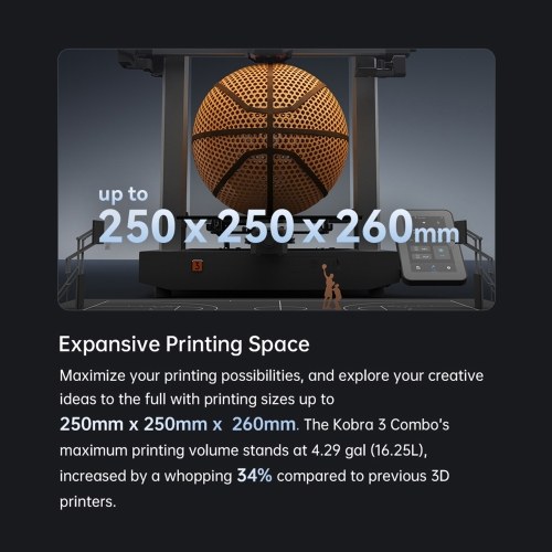 【Powerful and Easy】Easy to operate and assemble, Anycubic Kobra 3 Combo 3D Printer is the perfect combo of power and convenience. With unparalleled features like Pre-Installed, auto-leveling, Dynamic Structure and more, it lets you dive into the world of 3D printing with ease.