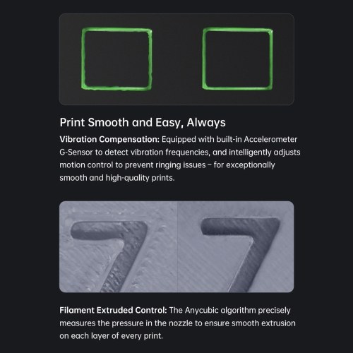【Vibration Compensation】Built with Accelerometer G-Sensors, Anycubic Kobra 3 Combo intelligently detects vibration frequencies and adjusts motion control, preventing ringing issues, ensuring smooth and high-quality prints.