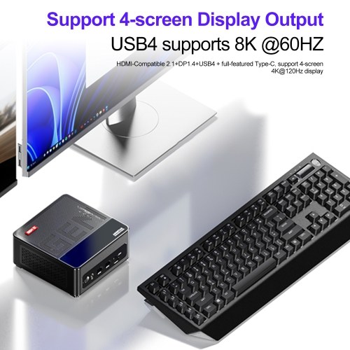 Multi-screen Display Output: Supports 4-screen display output, USB4 supports 8K @ 60Hz, HDMI2.1+DP1.4+USB4+full-featured Type-C, supports 4 screens, 4K@120Hz monitor, providing you with a rich visual experience.