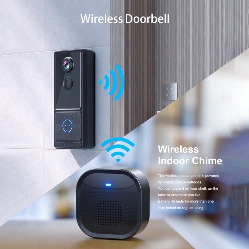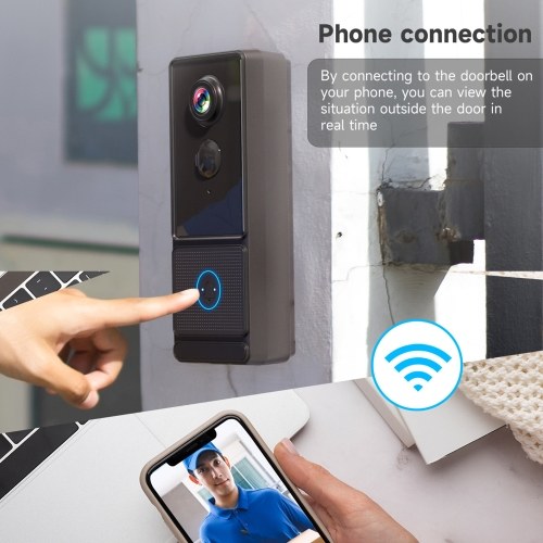 【Two-way Audio Communication】: The video doorbell features a built-in microphone and speaker, enabling you to have real-time conversations with your visitors. Whether it's a delivery person or a friend dropping by, you can easily communicate with them without opening the door.