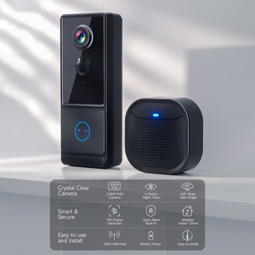 【Long-lasting Battery Life】: With its built-in 2*lithium battery 5200mAh batteries, this video doorbell can provide long-lasting power for continuous operation. You don't have to worry about frequent battery replacements, ensuring a reliable and uninterrupted monitoring experience.