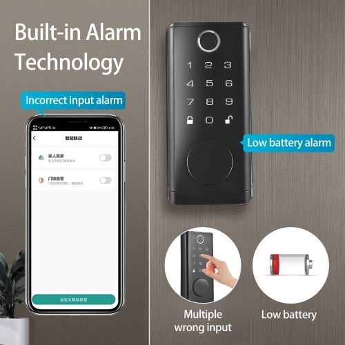 【Safety Alarm】Electronic door lock built-in alarm technology. It will alarm if anyboby enter the wrong password multiple times. Support Battery operated and USB emergency charging, while the low battery indicator offers advanced warning for battery replacement.