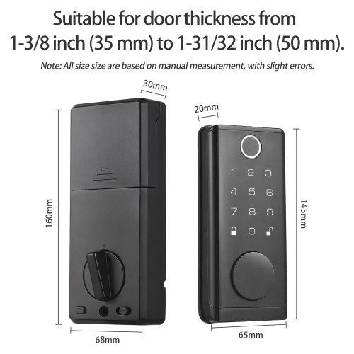 【Support Temporary, Multi-person and Multi-scenario Use】Smart door lock allows to create and manage up to 150 access codes and 100 access fingerprints, and temporary access for visitors. Widely used for home entry door, hotel, office, ect.