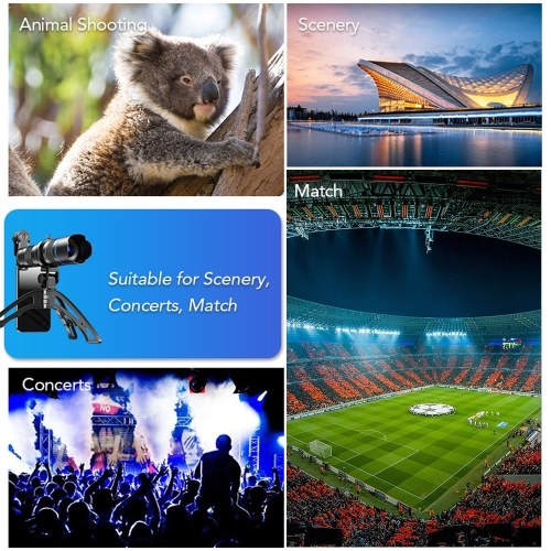High Quality Zoom Telephoto Lens: The 20-40X zoom telephoto lens with the newest design that has dual adjustments to get clear photos from miles away. Rotating the focus ring allows you to adjust focal length to get sharper pictures; Rotating the zoom ring allows you to zoom up to 40x in real-time as you take photos/ videos from 20 meters to miles away. It is a good equipment for tourism to help you enjoy the high quality image effect.