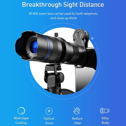 APEXEL 20-40X Zoom Lens-- From everyday images to outdoor landscapes, Apexel adjustable zoom lens is ideal for long distance photography in all weather conditions. Perfect for capturing creative nature or landscape shots just as you envisioned.