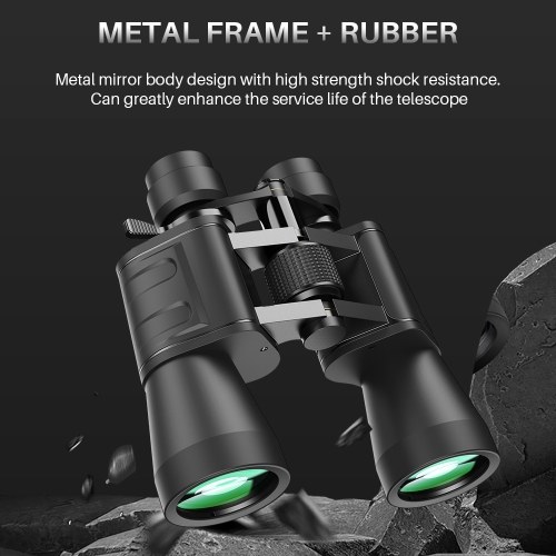 【Dual Focusing System】this binoculars for bird watching is equipped with comfortable central focusing wheel and diopter adjustment ring, simple operation and fast focus. Metal frame + rubber body design with high strength shock resistance.