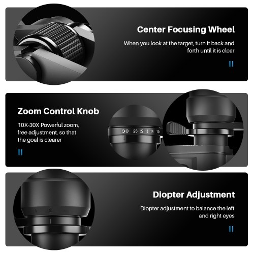 【High Powered Zoom Binoculars】Featuring 10X-30X adjustable magnification and 50mm large objective lens, this binoculars for adults & kids brings the world closer and provides high-resolution images with extremely accurate color reproduction for you.