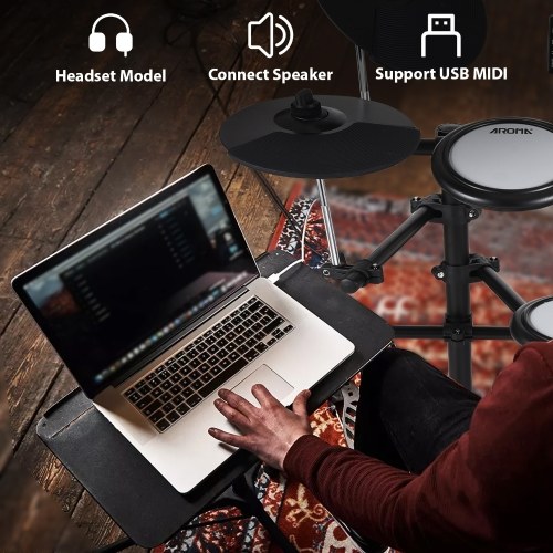 【Versatile Connectivity】: This electronic drum set supports USB MIDI, 3.5mm audio output, headphone output, and audio input. You can connect it to a drum amplifier (not included) to adjust the volume and choose different sound modes, or use headphones for quiet practice.