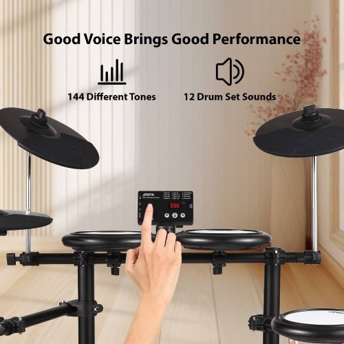 【Variety of Sounds】: With 144 different tones and 12 drum set sounds, this electronic drum kit offers a wide range of sounds to choose from. Whether you're practicing or performing, you can find the perfect sound to match your style.