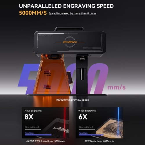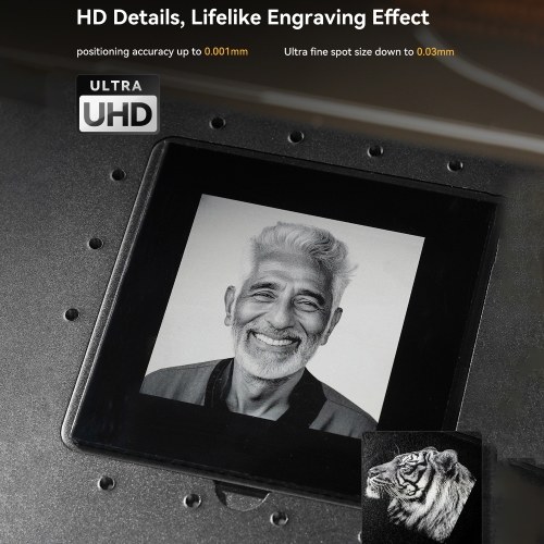 High Accuracy and Speed: Ultra fine spot+precise positioning system, high-definition details, lifelike (positioning accuracy can reach 0.001mm+spot as low as 0.03mm); It uses industrial galvanometer technology to greatly improve production efficiency, and M4 PRO has an ultra-high-speed engraving capability of 5000mm/s and a preview speed of 10000mm/s.