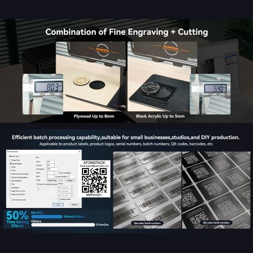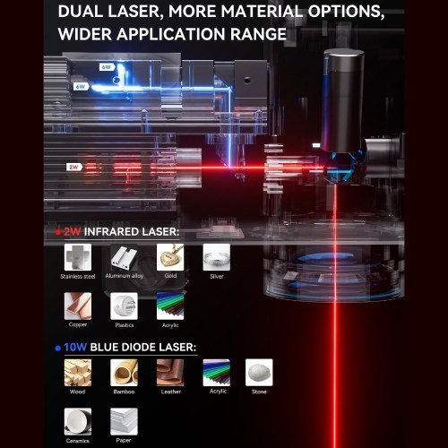 This Atomstack M4 PRO marking machine is amazing! It has 2 lasers, which means it can engrave on most metals and non-metals at a very fast speed and with an accuracy of 0.001mm, making the engraved works come to life!