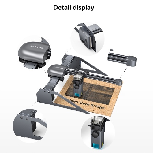 Newly Upgraded Ultra-fine Compression Laser:the laser adopts 4-fold lens group collimation and focus technology, the optical power is 4.5~5W, the laser focus area is reduced to 0.02mm², the high-density laser can easily cut 10mm thick wood boards and 6-8mm black acrylic ; Can directly engrave mirror stainless steel metal and ceramics.