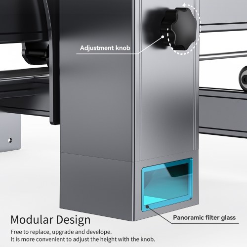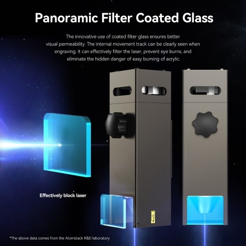 Eye protection design: The panoramic filter glass protective cover plays a very good role in protecting your eyes, filtering 97% of the ultraviolet light, you and the people around you can also watch laser engraving without wear goggles. Reduce the cost of your goggles and the inconvenience of wearing goggles.