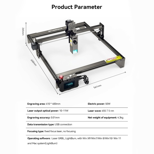 Wide compatibility: The machine can be compatible with various mature engraving software, such as LaserGRBL, LightBurn, support Win XP / Win 7 / Win 8 / XP / Win 10, and also support MAC system (LightBurn), engraving file format supports NC, BMP, JPG, PNG, DXF etc.