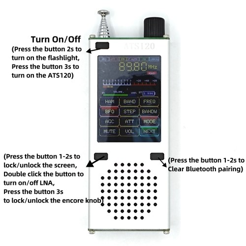 This product uses SI4732+ESP32+BT+2.4 inch touchscreen and other technologies. Built-in 40mm large-size speaker, with Frequency Modulation, AM, LSB, USB multi-mode reception, Frequency Modulation with RDS function mode, and enhanced BT stereo (Frequency Modulation) audio transmission function, you can use a stereo BT headset to receive the playback to achieve a true HIFI-level enjoyment, enhanced LNA preamplifier free switching to meet different signal occasions, slim and ultra-thin body built-in 820mm ultra-long rod antenna built-in body, easy to carry on trips, is the most cost-effective handheld pocket radio with SSB full-band touchscreen color radio.
