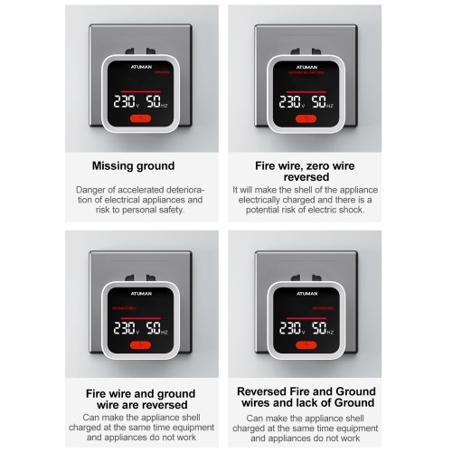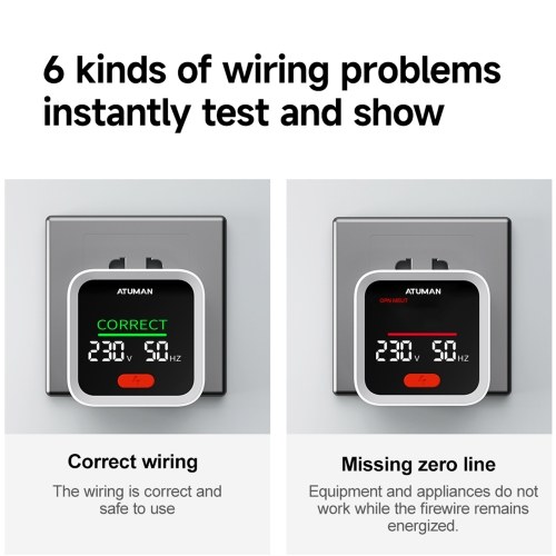 A portable socket detector can quickly and accurately detect the most common wiring conditions and problems. Just insert the circuit tester into the socket, and the clear LCD indication instantly shows the accurate wiring status, you can understand the results without looking at the graph, and it is very easy to read, even in sunlight or poor light. Small and lightweight socket-type tester detects open ground, reverse live/zero, and reverse live/ground, zero wiring faults.