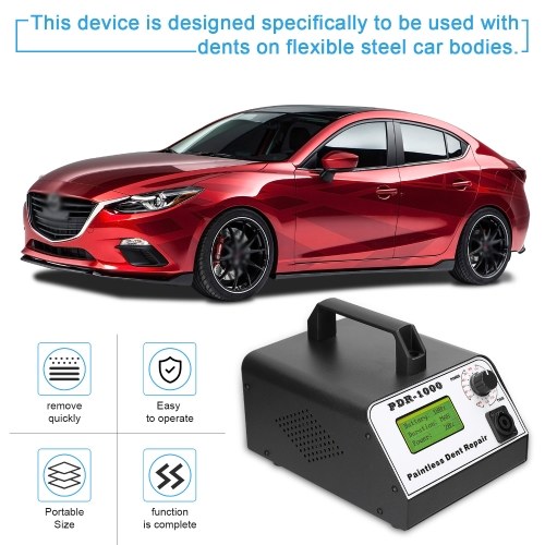 This device is designed specifically to be used with dents on flexible steel car bodies. Dents like the kind caused by impact from hailstones, which leave smooth, rounded dents can be removed, the more active materials may call for different devices like pull hooks or suction cups.