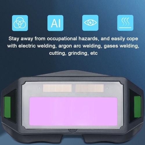 Electric welding goggles with an automatic color-changing screen for clear view and accurate positioning. It protects your eyes from being injured by sudden arc flashes and can also block welding slag.
