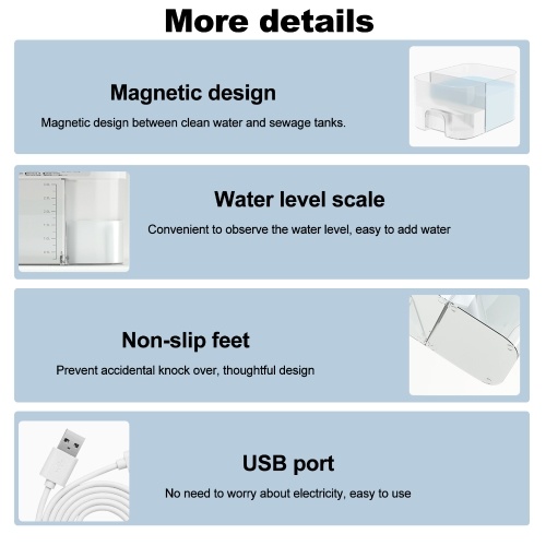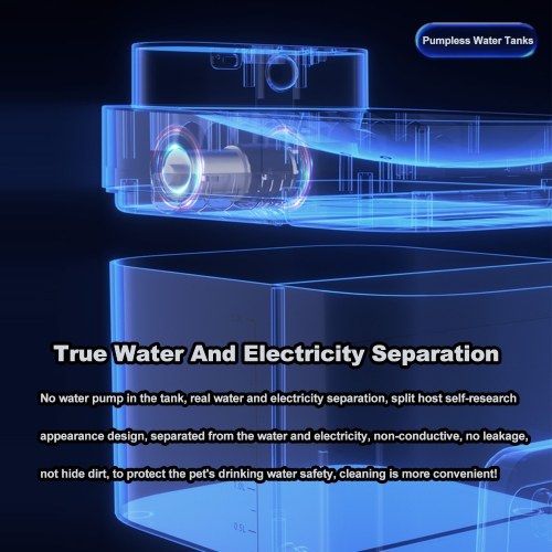 Safety Design: There is no water pump in the water tank, truly achieving water and electricity separation, non-conductive and non-leakage, ensuring the safety of pet drinking water and making cleaning more convenient.