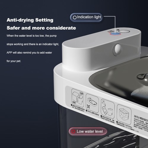 APP Remote Control: The water dispenser can be intelligently controlled by the APP, which can remind the owner to add water, clean the sewage, and monitor the pet's drinking times, making it convenient for the owner to understand the pet's drinking situation at any time.