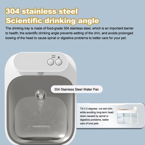 High-quality Material: The drinking tray is made of food-grade 304 stainless steel to ensure the health of pet drinking. At the same time, the scientific drinking angle does not wet the chin and avoids spine or digestive problems caused by long-term bowing.