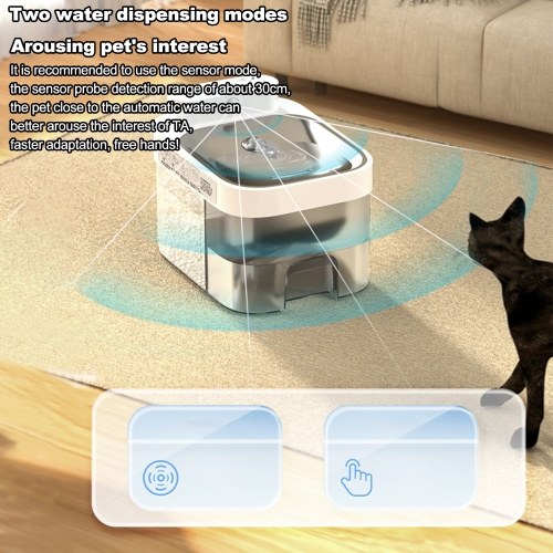Two Water Dispensing Modes: Induction and manual modes. The induction mode can automatically dispense water when the pet is close, better arousing the pet's interest and adapting faster.