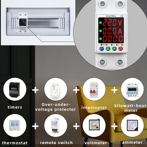This intelligent metering breaker integrates over-voltage, under-voltage, over-current, leakage, temperature protections and other functions in one, comprehensively protect the circuit safety. Intelligent identification of leakage, when it occurs overvoltage and over current, the protector will automatically cutoff the power supplys to protects home apparatus, if the fault has been eliminated, it will automatically reclose and turn on the power. Physical button design, the protecting threshold values can be set as you needed, sensitive operation and comfortable hand feeling. Suitable for many scenarios such as power distribution room, home electricity management, on-site equipment control, camera management, room lighting management, household appliances and so on.