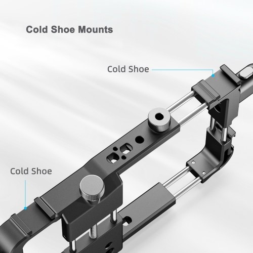 Multiple Extension Ports: The phone video rig has four cold shoe mounts that allows you to add a LED fill light, microphone, monitor or other accessories to make your video recording more professional.