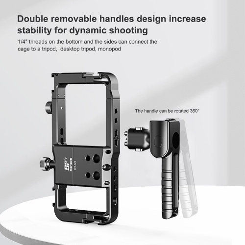 Dual Handles Design: Comes with dual side handles, you can use this phone cage to record smooth videos stably and easily. And the side handle can be detached and used as a top handle conveniently.