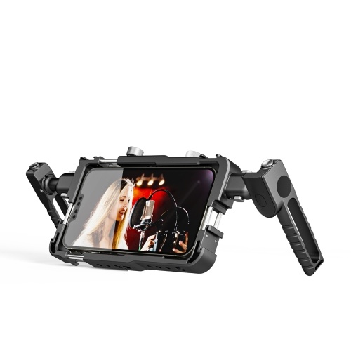 Premium Aluminum Alloy: The phone video cage is made of high-quality aluminum alloy material with a double-Layer anti-slip design, processed by precision machining and anodized hard.