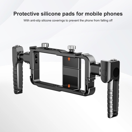 With Protective Silicone Pads: The phone video cage has anti-slip silicone coverings to prevent the phone from falling off and protect it from scratch.