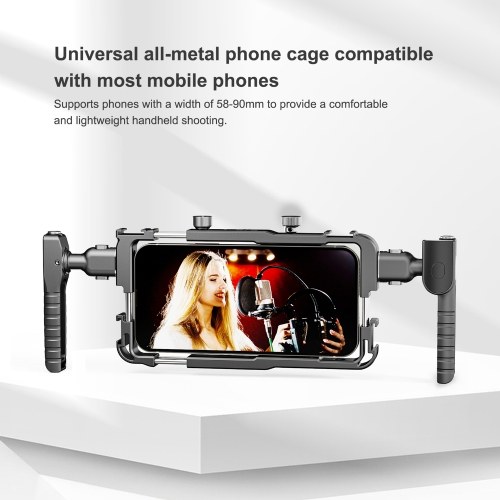 Universal Phone Cage: The phone cage designed for smartphones with a width of 58-90mm, can provide a comfortable and lightweight handheld video recording experience.